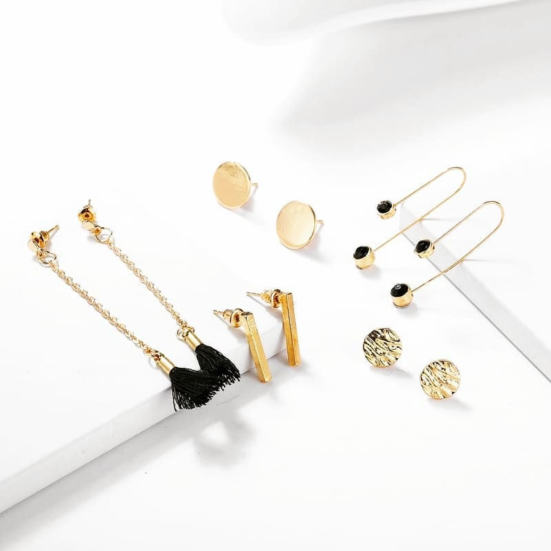 Black Tassel Earrings Set